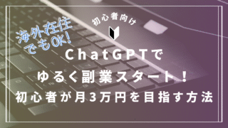ChatGPTを使って副業を始めたい初心者向けに、最短で月3万円を目指す方法をゆるく解説。海外でも在宅でもOK。ブログ・SNS・YouTube台本などの仕事を、スキルゼロで始める具体的なステップを紹介します。